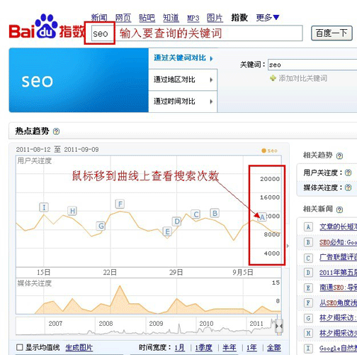 (5)到同行或竞争对手的网站去找 (6)关注行业事件中出现的新词汇(百度风云榜、谷歌趋势) (7)核心关键词的同义词、同音词、简写、错别字、拼音 关键词分析方法: (1)搜索结果数量(100万以下属于竞争较低;100-1000万属于中等;1000万以上属于竞争激烈) (2)搜索指数(用百度和谷歌关键词工具分析日搜索次数) (3)查看参与竞价推广的网站数量和出价(白天查看,晚上很多竞价推广会停止。看出价需要在百度推广系统开立账户) (4)百度首页网站自然排名的竞争情况(前10个自然排名网站,有多少独立域名或内容页?竞争对手网页的外链数量和质量?) 关键词选择原则: (1)核心关键词:搜索结果数中等及以下、日搜索次数100次以上(具体根据自身情况)、竞价不是太激烈 (2)长尾关键词:搜索结果数较低、日搜索次数100次以下、没有竞价或竞价不激烈、自然排名前10名里有2个以上内容页且竞争对手网页外链数量和质量一般