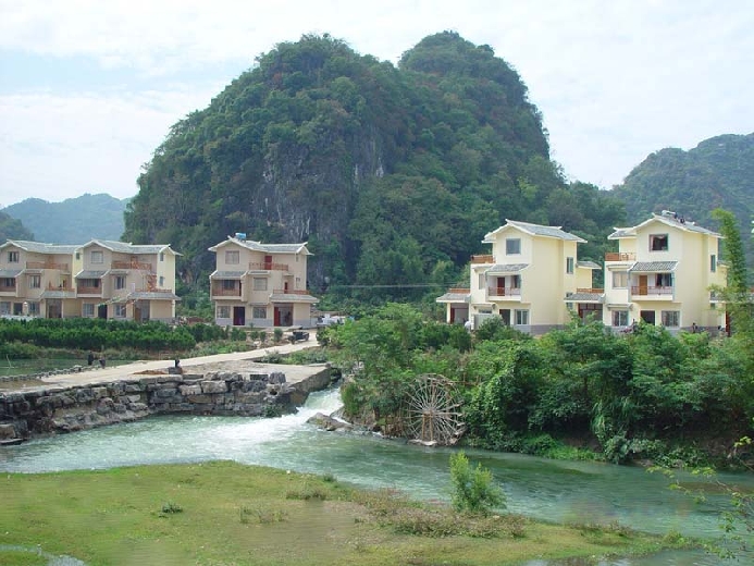 广西百色市今年刚刚甩掉国家级贫困县帽子的革命老区——平果县近几年来陆续建成的别墅似的农民住宅群成为一道亮丽的风景线。