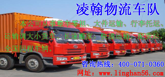 上海凌翰物流有限公司(http://www.linghan56.com/)是一家集公路干线运输、铁路运输、空运代理、仓储配送、搬家包装、市内配送、设备迁移、到达派送、提供物流信息咨询及物流方案设计为一体的综合性物流企业,现已在全国设立 北京、天津、济南、石家庄、西安、太原、武汉、郑州、呼和浩特 兰州、银川、西宁 成都、重庆、昆明、贵阳、拉萨、乌鲁木齐、南宁 合肥、南京、苏州、无锡、常州... 福州、厦门 广州、深圳、海口、三亚等分公司并在全国各地加盟了数百家专线联盟合作单位。公司自备及合同签约集装箱货车、配送车千余部和各种装卸机械,货架式货仓、停车场并且全公司实行电脑网络化运作。